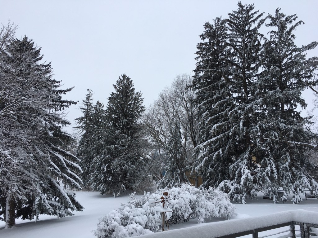 We got over a foot of snow yesterday, weather man said we were below normal snow totals but I am pretty sure we made up for it in a day….Cant remember the last time we got this much snow. Its beautiful and peaceful to look at, but cant say the digging out part is a joy.. Thanks Mother Nature!