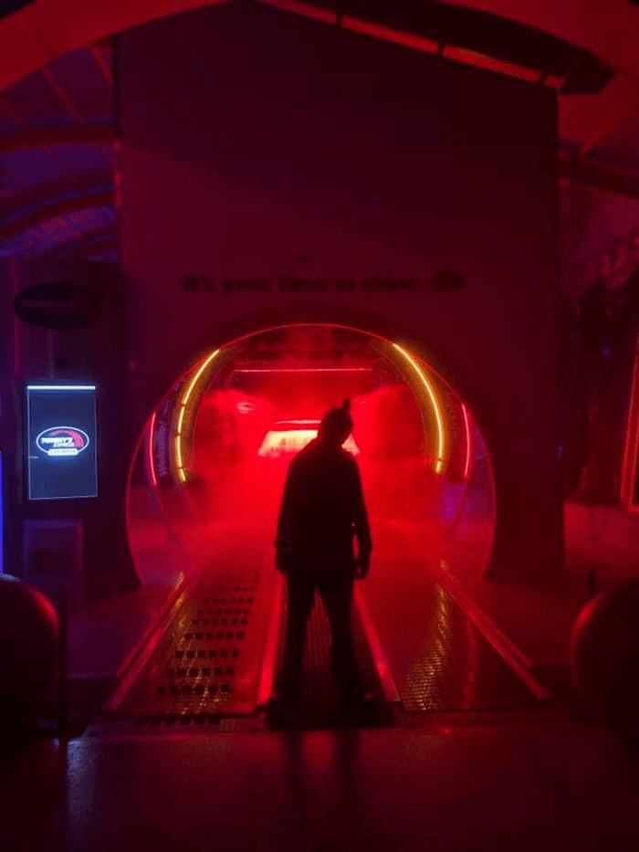 I had never heard of such a thing but my sister posted it on my facebook. Its a drive through car wash all decked out as a “haunted” house.