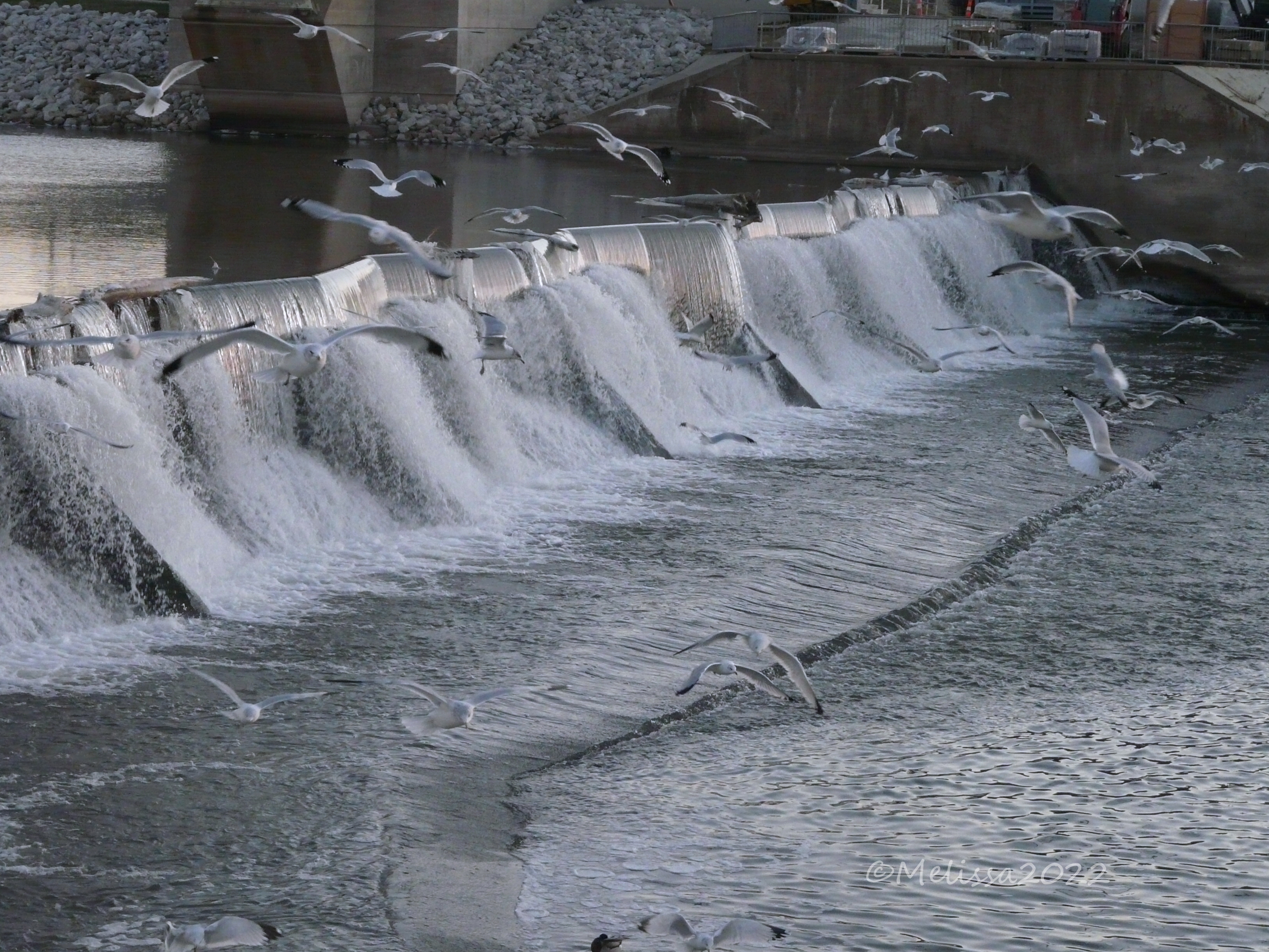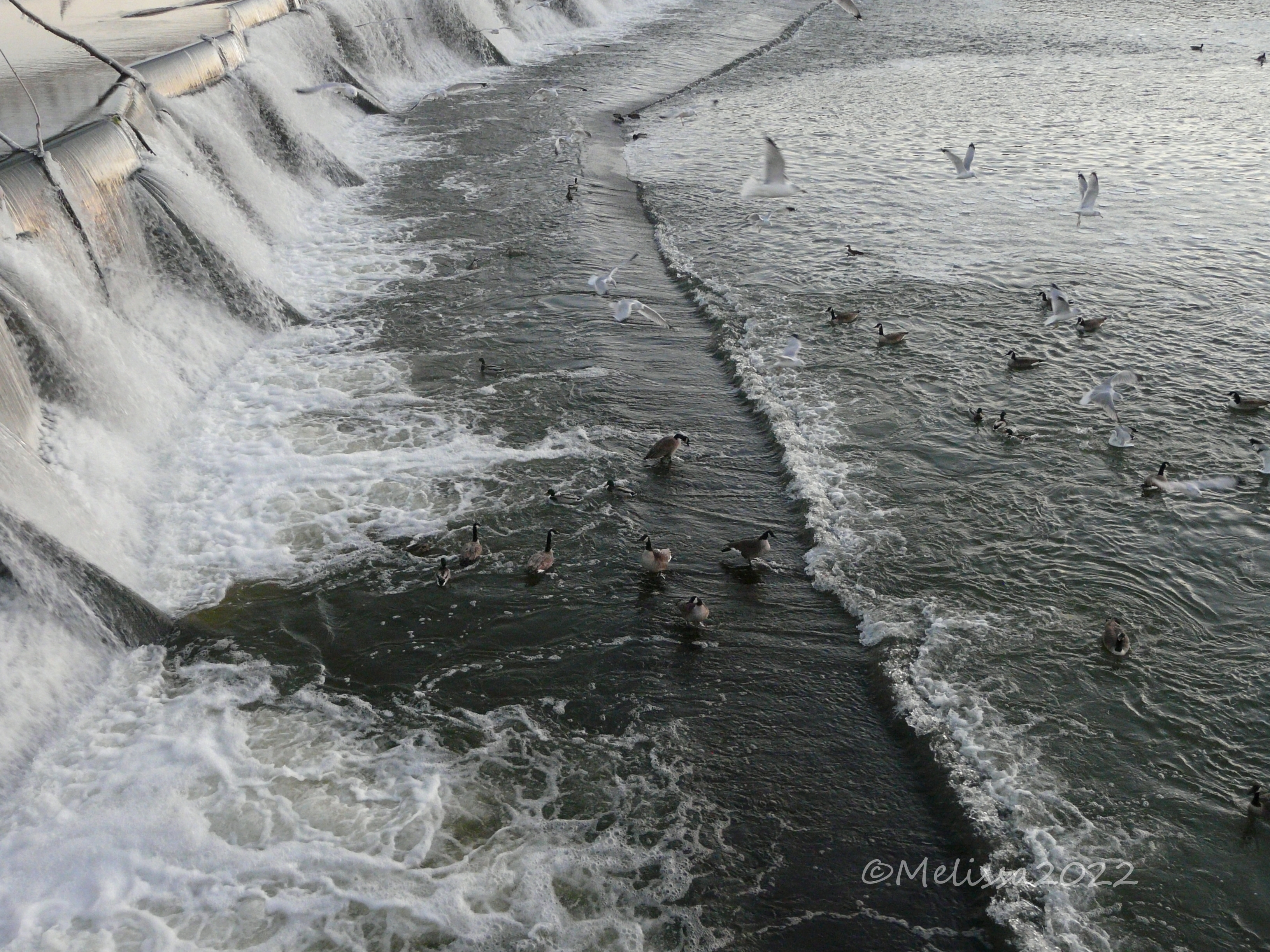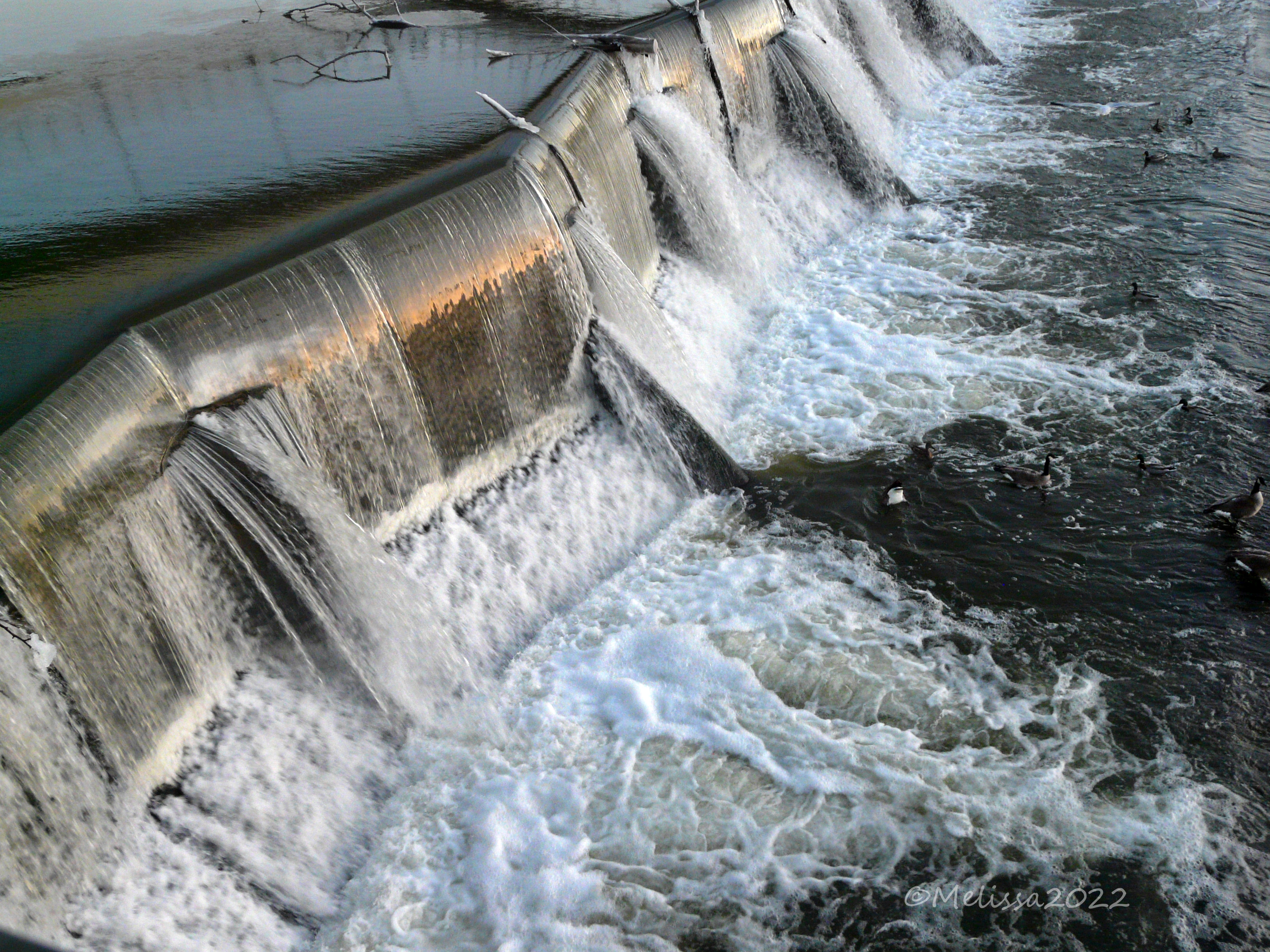 Tags: cities, des moines, des moines river, Downtowns, ducks, geese, ice, river, waterfalls